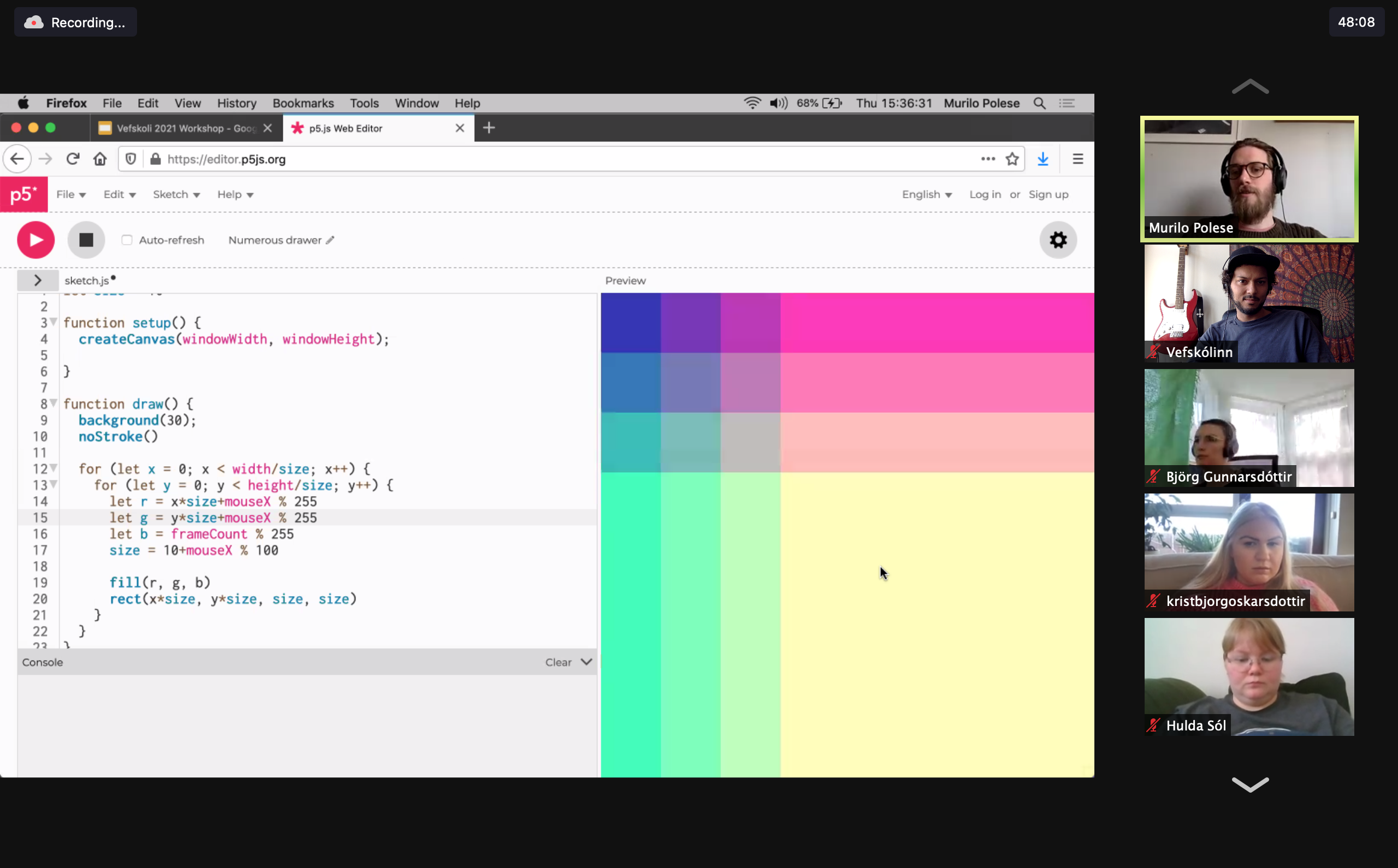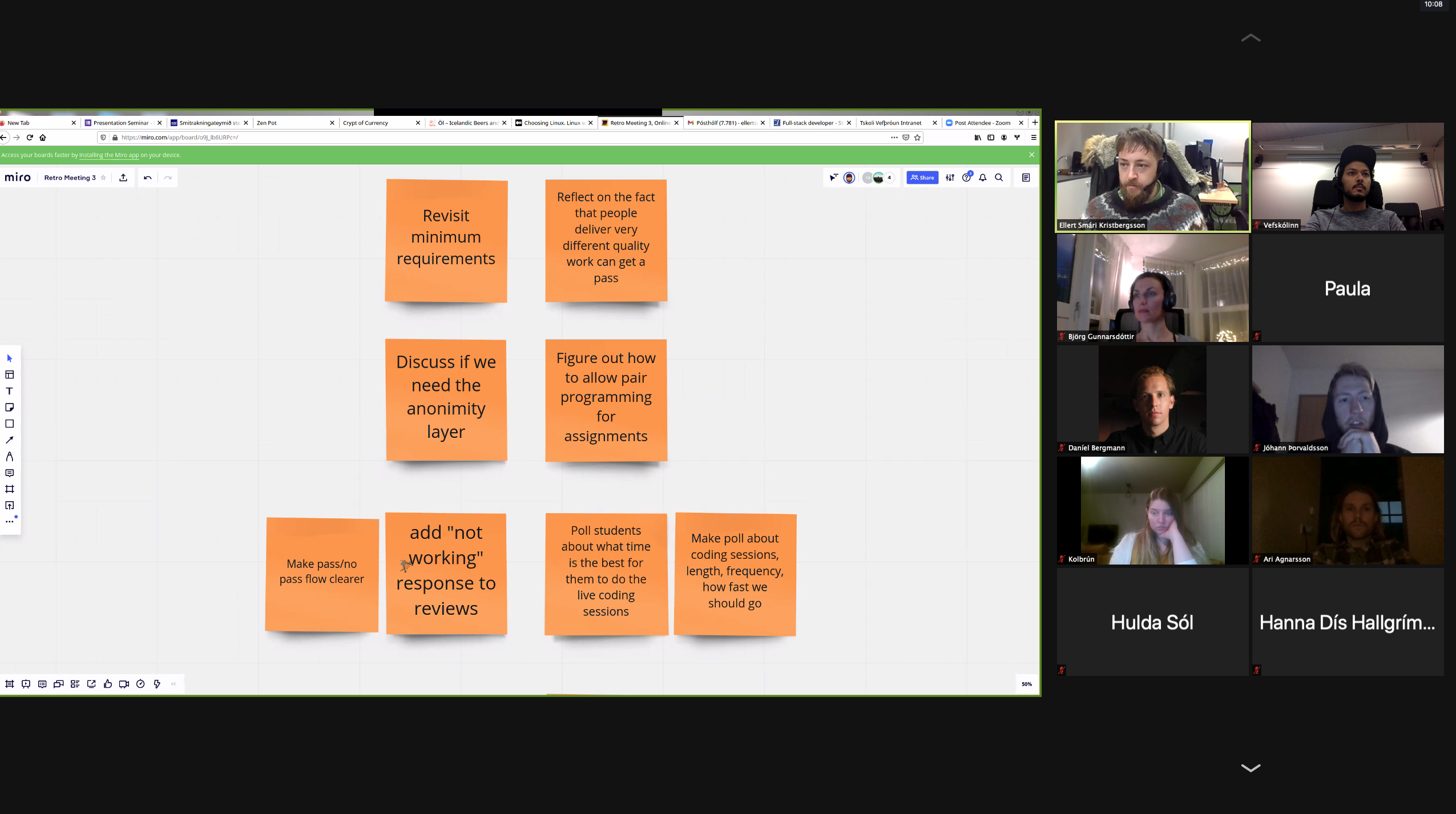In place of typical classes, there are 3 live coding sessions a week, plus 1 mob programming session and dozens of hours of practical workshops with guest instructors.